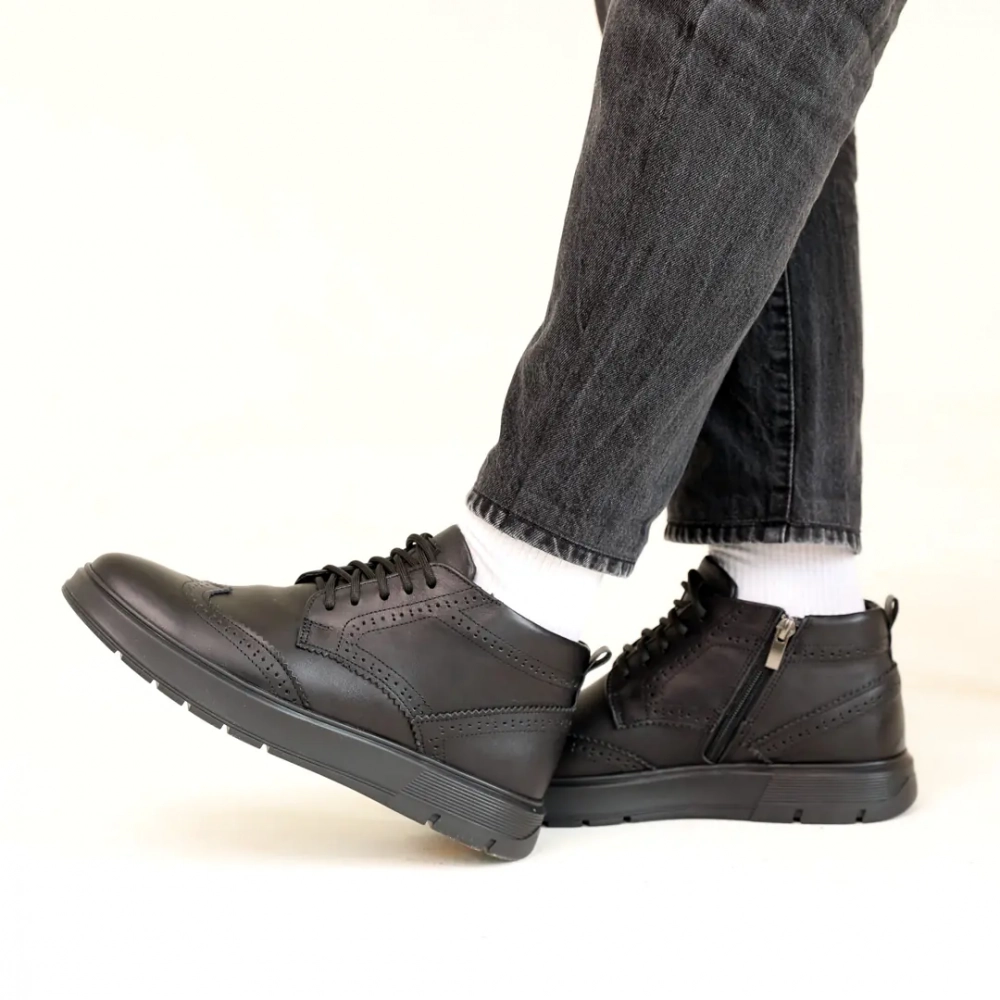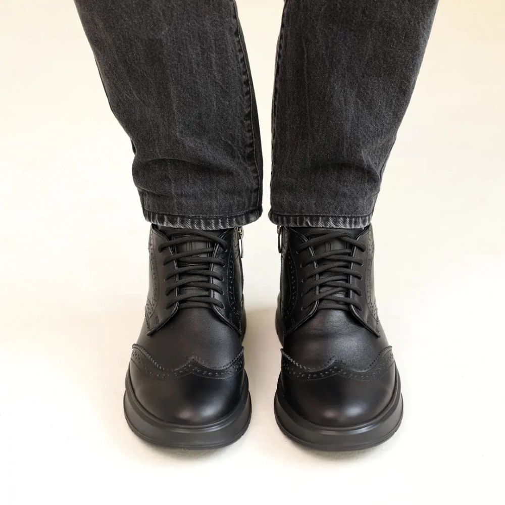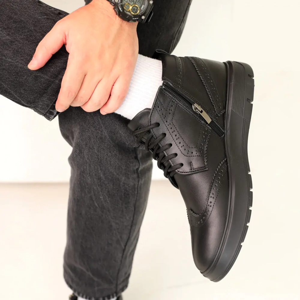Ботинки мужские кожаные мех 587318 Черные - удобство превыше всего