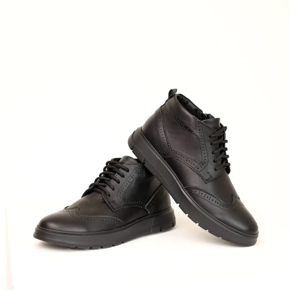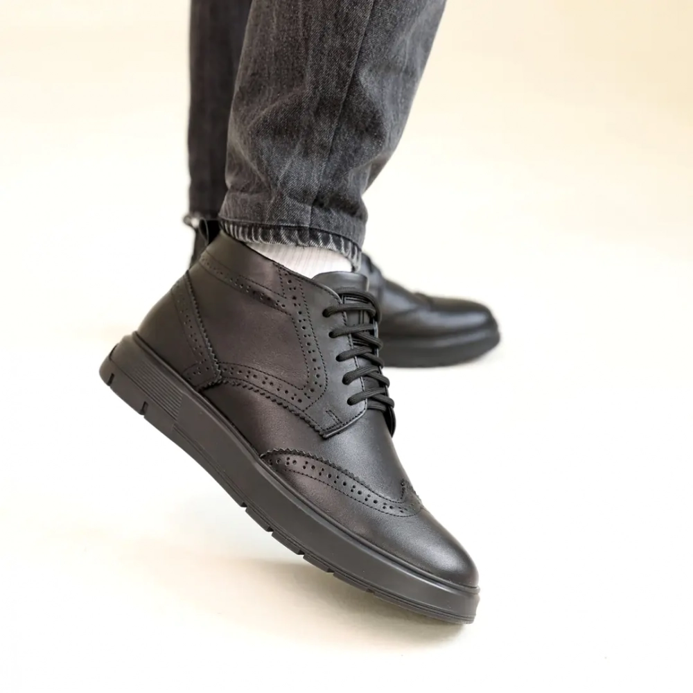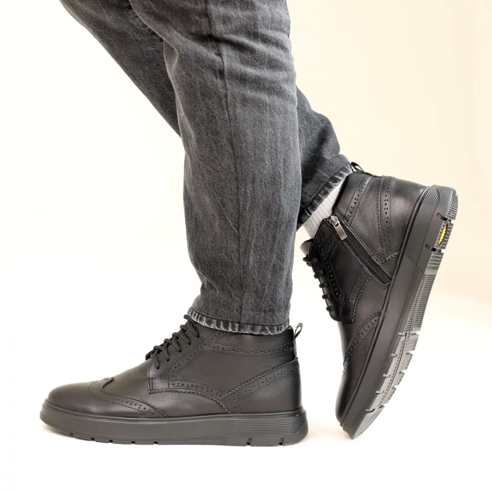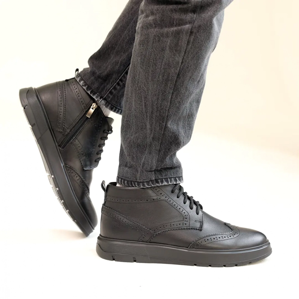 Ботинки мужские кожаные мех 587318 Черные - удобство превыше всего